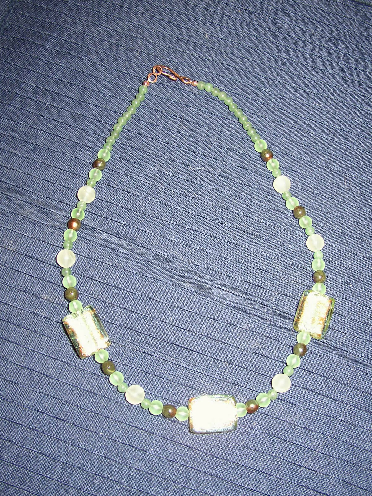 I paired the green with copper-green glass beads, green glass and aventurine rounds with copper clasp.