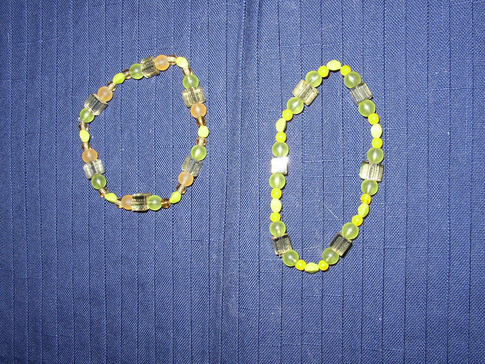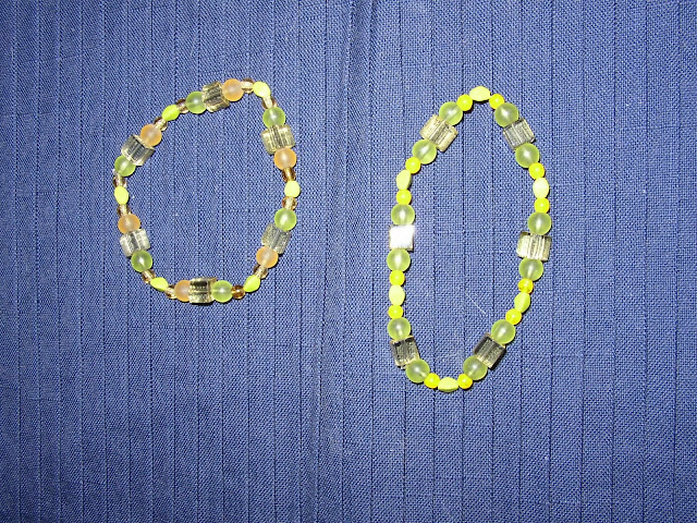 These are mixed glass bracelets. I was experimenting with the square and round shapes in summer colors.